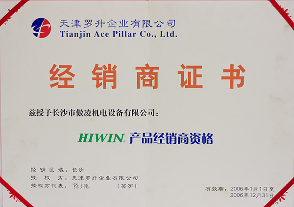 2006羅升產(chǎn)品經(jīng)銷商證書